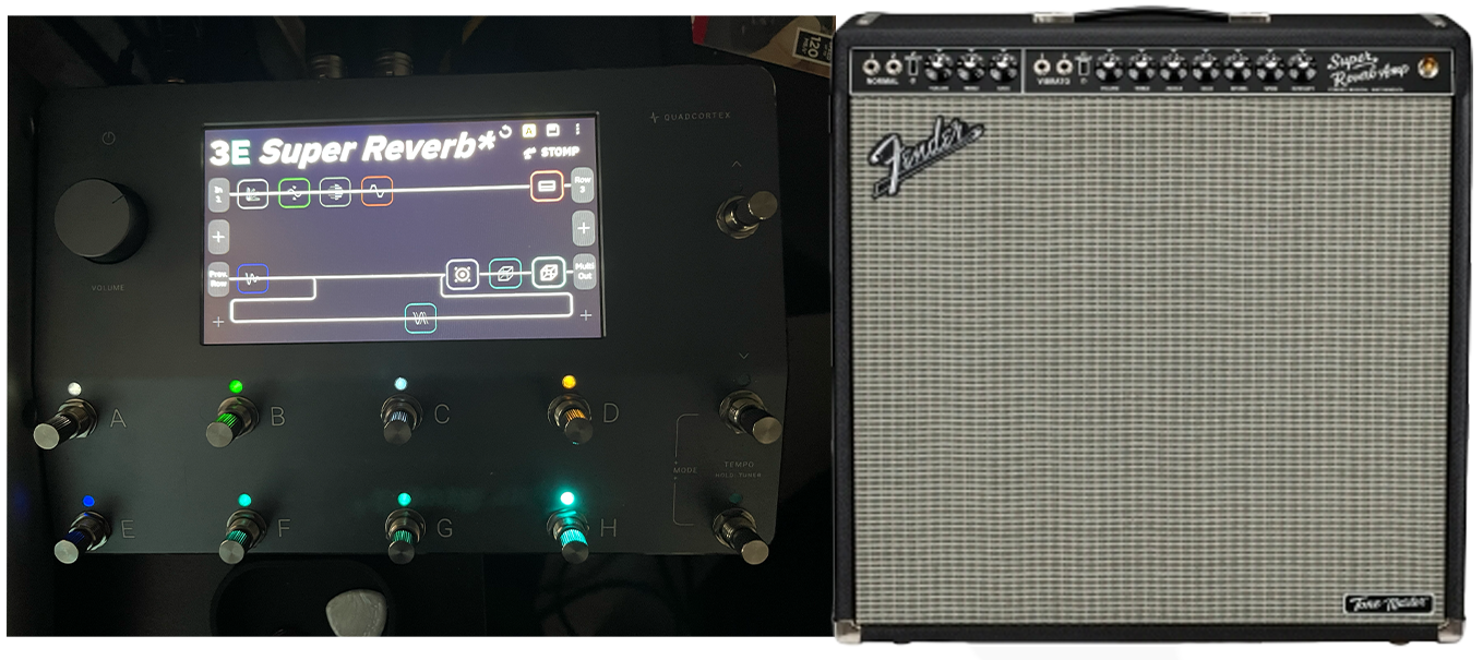 For myself, I like them both. It is my opinion that Fender has nailed the sound of their classic amplifiers with their Tone Master series. Instead of trying to be all things to all people, the Tone Master series is focused on doing one thing very well, and I think that they have succeeded. There is a subtle difference live because of the feel in the room of the tube power stage and output transformers over the Class D solid state of the Tone Master but both can generate sound pressure levels where the sound person or club owner will tell you to turn it down. The Tone Master Super Reverb does not use the Neodymium speakers found in the other Tone Masters, it uses Jensen P10R Alnico speakers which are as true to the originals in a 66 Super Reverb as you will find. The Tone Master enters breakup once you push the volume to 5 and the QC patch is similar. While I love the sound of a clean Super Reverb, an overdriven one, is not my favourite sound, so I am personally more inclined to use an OD pedal to get that overdriven sound. Pick one you like. I find the Nobels ODR-1 to be a good fit for this amp along with the PRS Horsemeat. In the QC, I am using their Klon profile OD when I play that way. No overdrives were used for the samples because ODs all colour the tone. I like that the Tone Master can be played using its speakers and or with the DI out, with or without cab sim on the DI. The DI out has its own level control so if you are playing a gig, you can hear your amp for yourself while sending the DI signal to the front of house system. I can do the same thing with the QC using FRFR monitors on stage and send the DI out to the front of house. I do think that if you have a run and gun gig the Quad Cortex is an optimum solution because it is small and can fit in a backpack and the effects roster is really very comprehensive without needing any outboard gear. Obviously this is a personal decision for the individual musician. For the home player / recordist, both are great, although even with the attenuator fully down on the Tone Master, it’s still pretty loud whereas the Quad Cortex can drive an FRFR speaker or use headphones. If space is a consideration, the Quad Cortex is a better option, but if you have the space, and the ability to use the Tone Master as the Super Reverb it is designed to be, you may like that better.